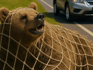 Sur la route, j’ai remarqué un ours empêtré dans un filet, incapable de se libérer : je me suis arrêté et j’ai aidé l’ours, mais quelque chose d’inattendu s’est produit.
