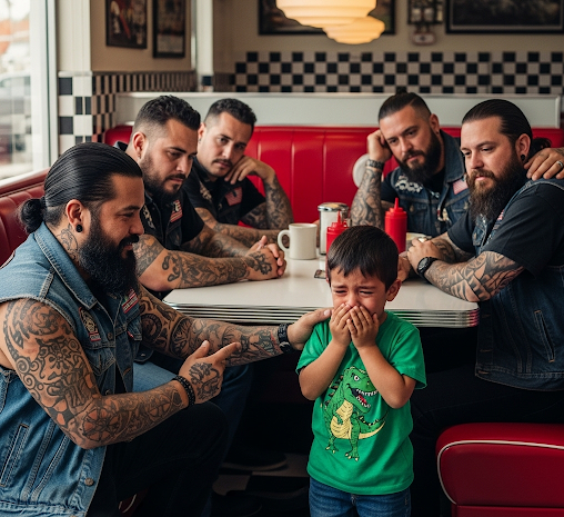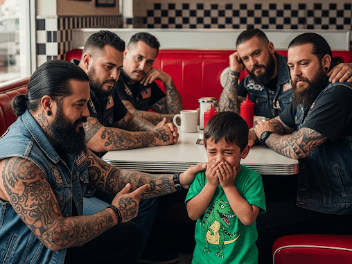 Toutes les conversations s’arrêtèrent. Quinze vétérans en gilets de cuir restèrent figés, fixant le petit garçon en t-shirt dinosaure qui venait de nous demander de commettre un meurtre, comme s’il réclamait plus de salsa pour ses tacos.
