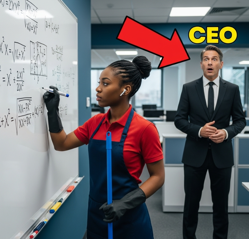 Son cœur se mit à battre la chamade. Ses yeux se fixèrent sur ce tableau noir rempli d’équations compliquées. Pendant quelques secondes, elle se débattit. Une petite voix lui dit : « Ne t’en mêle pas, Rachel, ce n’est pas ton rôle. » Mais une autre voix, plus forte, cria : « Tu peux résoudre ça. » Et alors l’impensable se produisit : Rachel posa son balai, entra dans la pièce et s’approcha du tableau noir. Son regard, formé au MIT, se mit à analyser chaque symbole, chaque équation, et soudain, elle la vit : une minuscule erreur que tous les experts avaient ignorée.