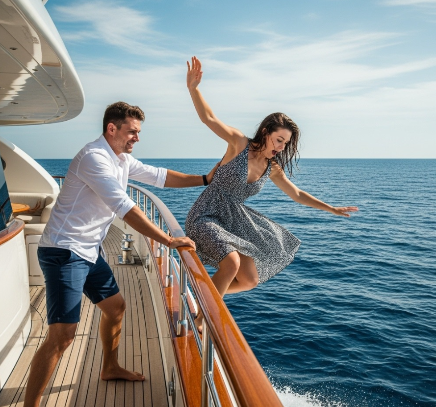 Olivier resta immobile, le regard fixé sur l’endroit où elle avait disparu. Son cri n’avait été qu’un écho fugace, noyé par le grondement de la mer et de l’abîme qui l’entourait. Il ne lança pas de balle, n’appela pas à l’aide, ne pleura pas. Il sortit son téléphone, prit une grande inspiration et composa un numéro. « Ici le capitaine Olivier », dit-il d’une voix tremblante. « Ma femme. » Il glissa, tomba par-dessus bord, laissa sa voix se briser et tomba à genoux, agrippé au bord du bateau. Il n’y eut pas de larmes, seulement un silence contenu, un geste calculé et le léger tic-tac de sa montre de luxe.