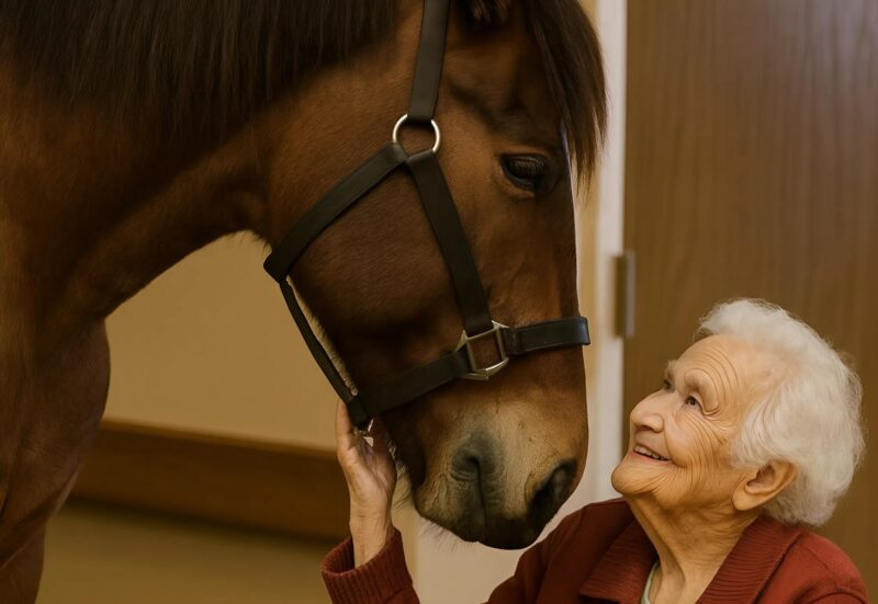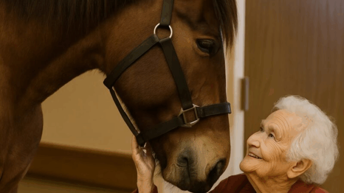 Dans une maison de retraite, un cheval brun est soudainement apparu : tout le personnel et les résidents étaient sous le choc, jusqu’à ce qu’ils découvrent pourquoi l’animal était là
