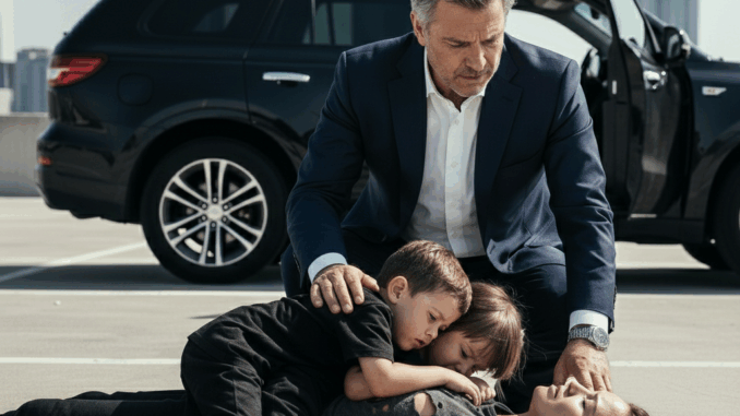 Puis, un élégant SUV noir ralentit jusqu’au bord du trottoir. La vitre teintée s’abaissa, révélant un homme d’une cinquantaine d’années : Jonathan Pierce , entrepreneur milliardaire, un visage qu’on voit souvent sur les couvertures de magazines et les émissions financières. Il se rendait à une réunion, mais la vue de deux enfants désespérés aux côtés de leur mère inconsciente lui serra la poitrine.