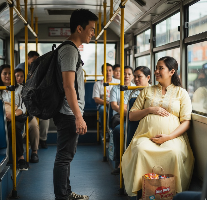 À l’arrêt suivant, une femme enceinte monta à bord. Elle portait une robe de maternité à carreaux bleus, la sueur perlant à la naissance de ses cheveux, une main sous son ventre, l’autre agrippant la rampe tandis que le bus tanguait. Le wagon sombra dans ce silence familier de maladresse urbaine : tout le monde fatigué, tout le monde occupé, tout le monde justifié. Ethan se mordit la lèvre. Son avenir dépendait de l’interview du jour, mais il y avait aussi une petite vie suspendue dans ce ventre rond.