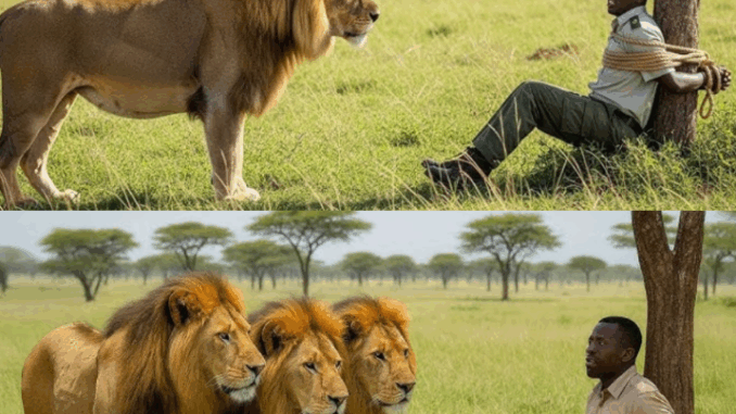 Un lion trouve un garde forestier attaché dans la savane — Ce qui s’est passé ensuite a choqué tout le monde