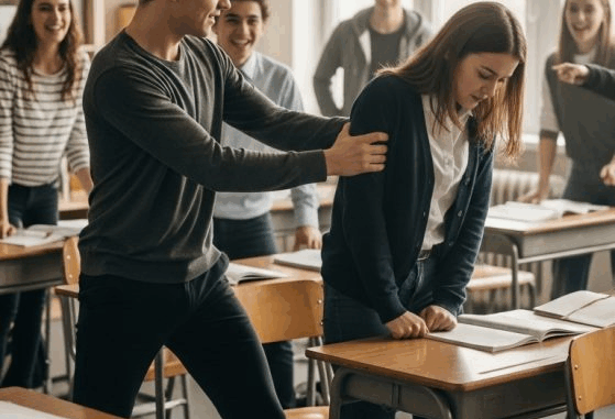 Tyler a commencé par des remarques sarcastiques — « Dis donc, la nouvelle, tu as encore perdu ta carte ? » — mais les taquineries sont vite devenues plus méchantes. Chaque jour, il trouvait de nouvelles façons de l’embarrasser devant les autres : la faire trébucher dans le couloir, lui arracher ses cahiers, imiter sa voix. Les autres élèves riaient nerveusement, n’osant pas intervenir.