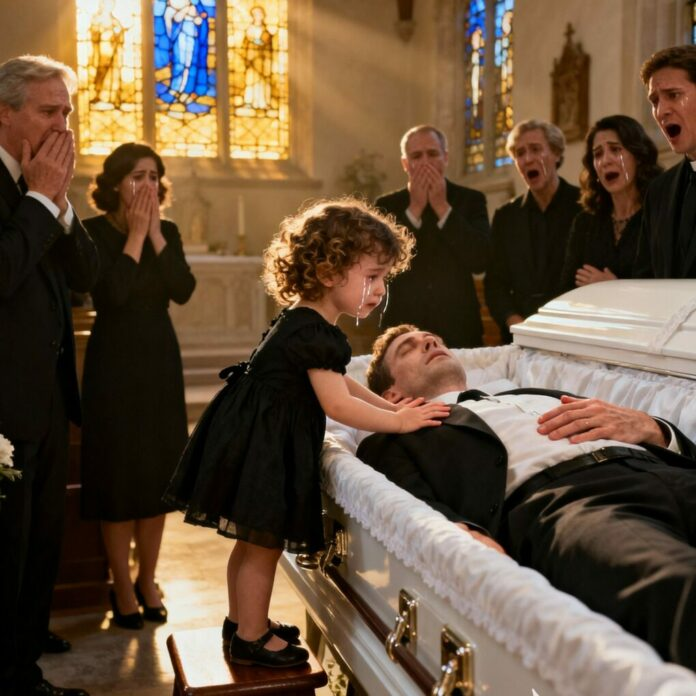 Lorsque le pasteur commença l’éloge funèbre, Ella se leva de son siège, ses chaussures vernies claquant sur le sol de marbre. L’assistance se tut. Elle monta sur un petit tabouret près du cercueil et tendit la main pour toucher celle de son père.