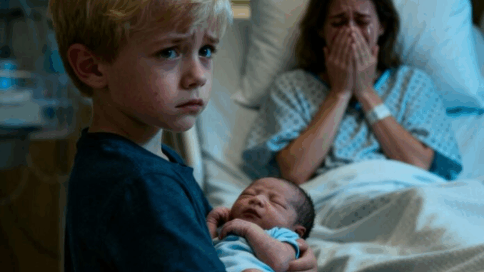 Après un moment, le docteur Miller fit signe à l’infirmière de le laisser entrer. Ethan s’approcha du lit, monta sur la chaise près de sa mère et contempla le bébé emmailloté de blanc. Ses lèvres tremblèrent. « Il est si petit », murmura-t-il. Puis, avec précaution, il tendit les bras. L’infirmière hésita, mais finit par le laisser prendre le petit paquet dans ses bras.
