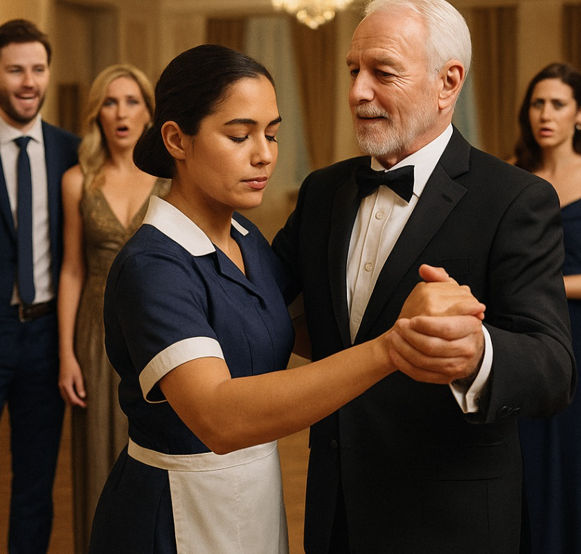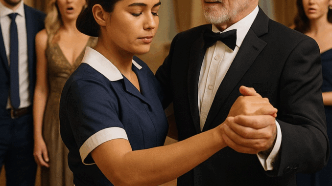 Maria posa une main sur l’épaule du millionnaire, l’autre dans la sienne, et se déplaça avec une élégance inattendue. Ses pas étaient assurés, fluides, parfaitement synchronisés avec le rythme. L’orchestre jouait une valse classique, et le son des violons semblait les envelopper comme par enchantement.