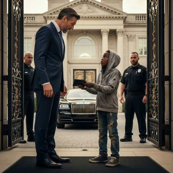 Avant que Marcus ne puisse protester, une voix grave retentit depuis l’allée. Un homme de grande taille, vêtu d’un costume élégant, s’approcha. C’était William Harrington en personne. Il regarda le garçon, puis le portefeuille qu’il tenait à la main.