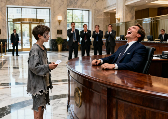 C’est ce que dit le garçon en baskets usées et t-shirt de seconde main, en entrant d’un pas assuré dans l’espace VIP du plus luxueux immeuble financier de la ville. Il avait dix ans, les cheveux un peu en bataille, et une pochette transparente serrée contre sa poitrine comme un trésor. Autour de lui, du marbre étincelant, du cristal, des costumes de marque, des coupes de champagne. Rien n’était fait pour un garçon comme lui.