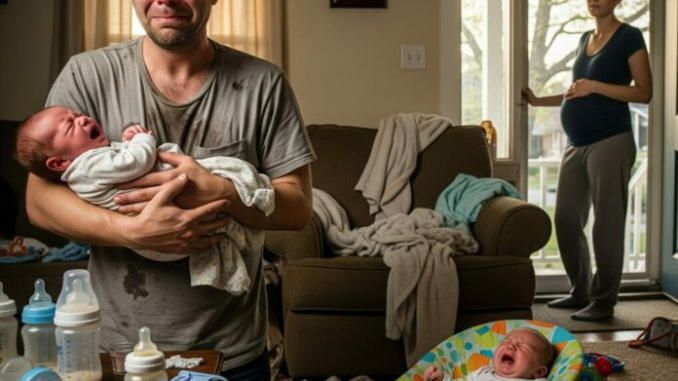 Mark se tenait au milieu de la pièce, la chemise tachée de régurgitations, essayant de calmer un bébé qui hurlait tandis que l’autre gigotait sur le canapé. Des biberons jonchaient le plan de travail de la cuisine. Le sac à langer était renversé, comme s’il avait été fouillé lors d’un cambriolage. Mark murmurait sans cesse, la voix tremblante : « S’il te plaît, mon petit… arrête de pleurer… »
