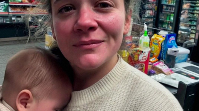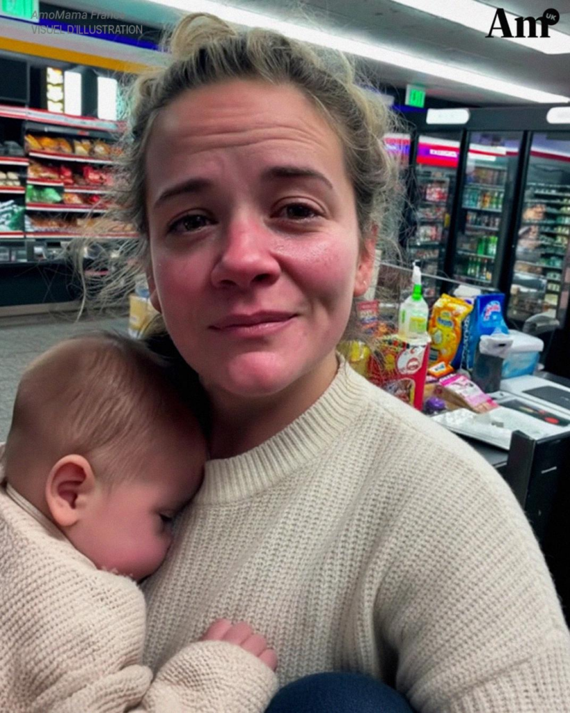 Elle n’a rien dit au début, elle s’est juste dirigée lentement vers les rayons tout en portant l’enfant sur la hanche. Elle a pris une petite brique de lait, un pain de mie et un paquet de couches. Rien de superflu.