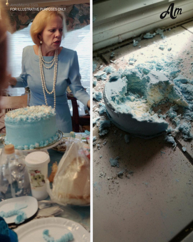 Puis, dans un geste d’une absurdité et d’une préméditation sans nom, elle attrapa le couteau à gâteau posé sur la table. Elle trébucha légèrement. Ce ne fut pas suffisant pour la faire tomber, mais juste assez pour que le gâteau, d’une valeur de 300 dollars, s’écrase au sol.